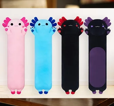 Free Shipping PP Cotton Filled Super Soft Stuffed Bedside Marine Life Cute Long Body Axolotl Toy Pillow
